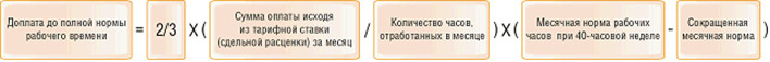 Доплату сдельщикам и тем, кому установлены тарифные ставки, советуем делать за разницу в часах месячной нормы при 40-часовой рабочей неделе (то есть полной нормы) и сокращенной месячной нормы работника. Законом порядок расчета такой доплаты не определен.